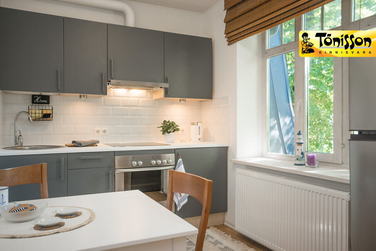 PIKAAJALINE LEPING, TAGATISRAHATA ÜÜRIMISEKS LÄBI RENDIN PORTAALISisustatud, avar 2-toaline korter paikneb stiilse, värskelt renoveeritud puitmaja 2. korrusel. Mererand, jahisadam ning erinevad SPA-d on käeulatuses, kesklinn on lühikese jalutuskäigu kaugusel.